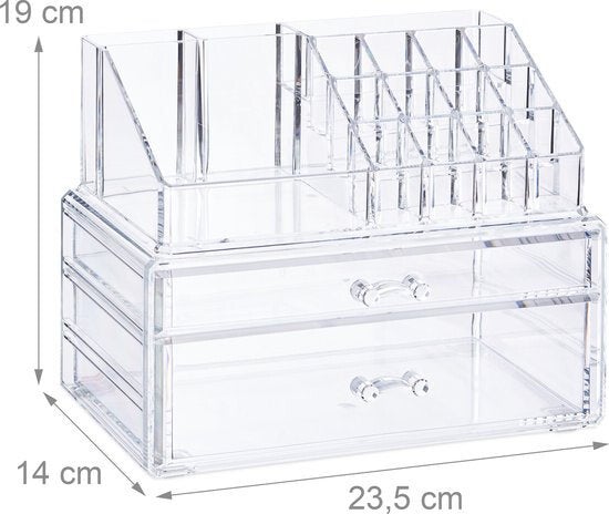 Make-up organizer transparant met 2 lades, 16 vakken Excl. Accessoires