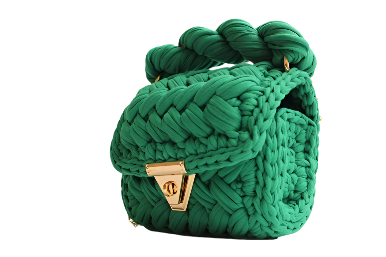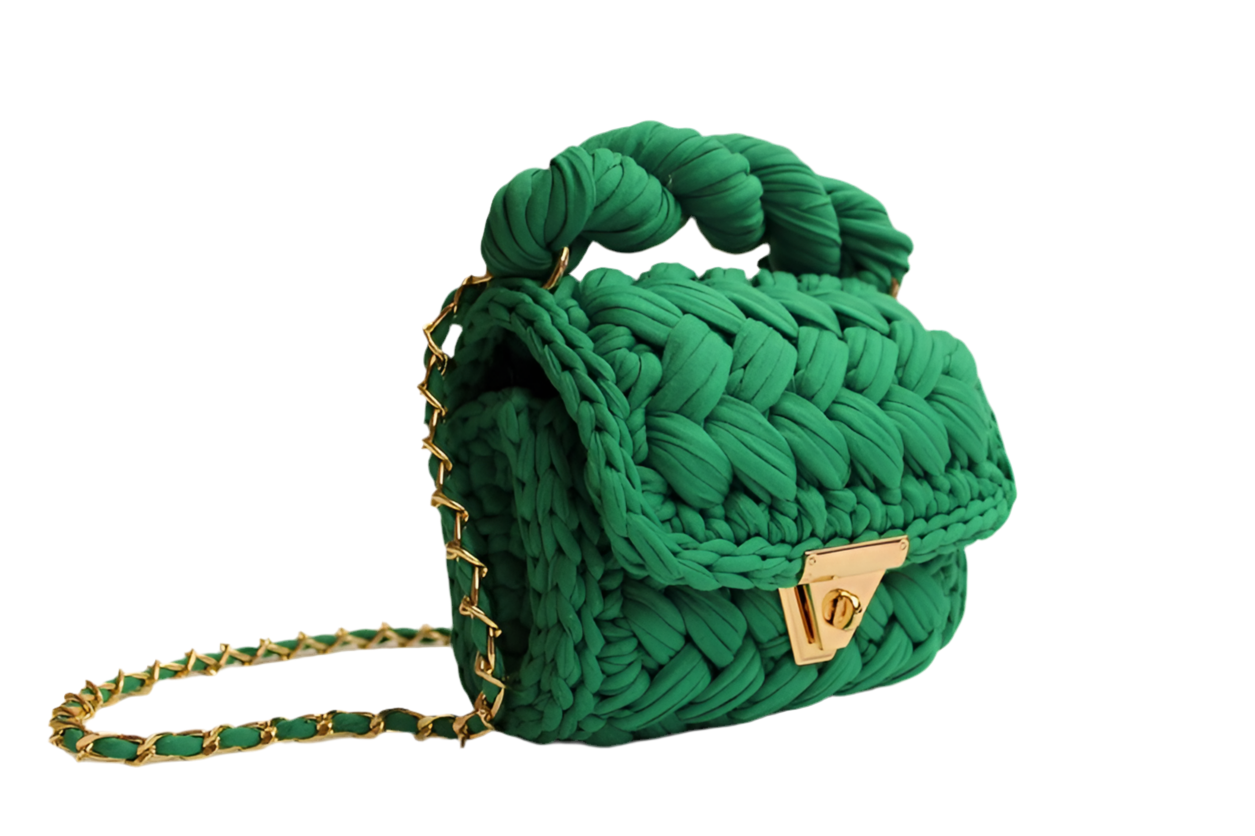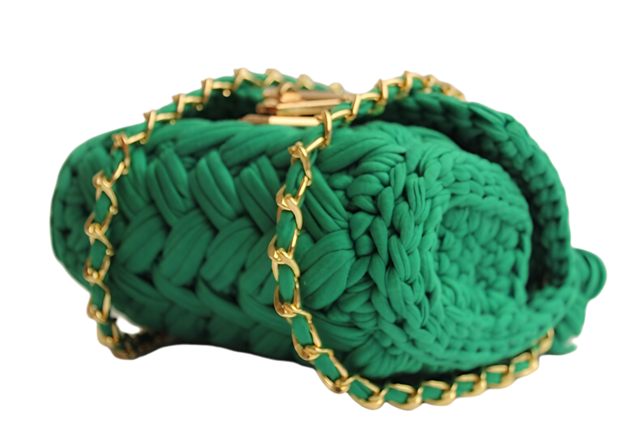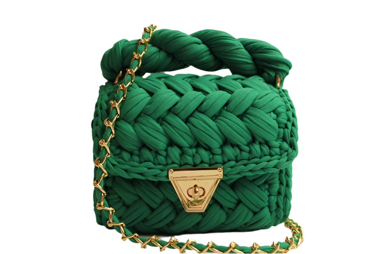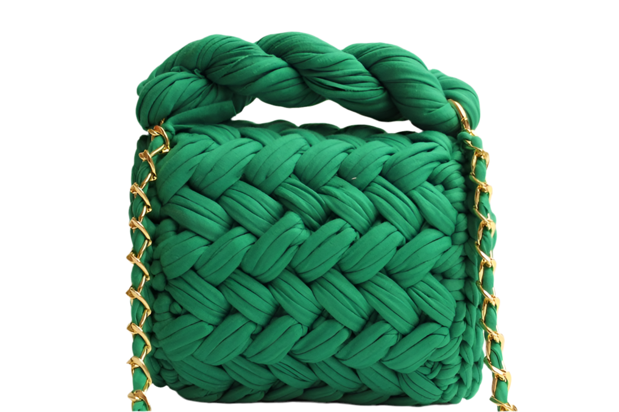 Geweven handtas groenmet draagband en tassel