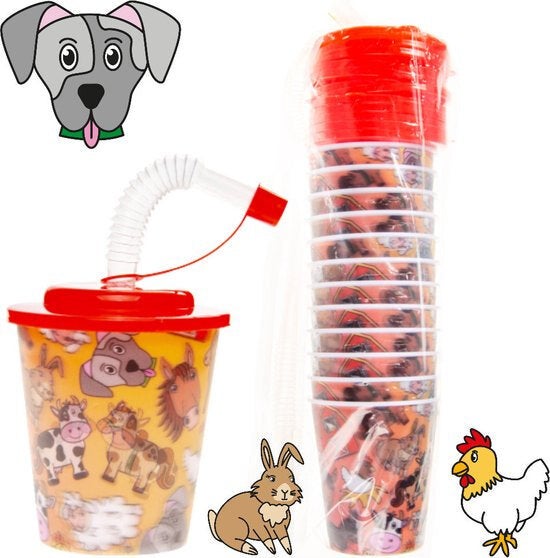 3D drinkbekers met rietje en deksel - boerderij dieren - 12 stuks