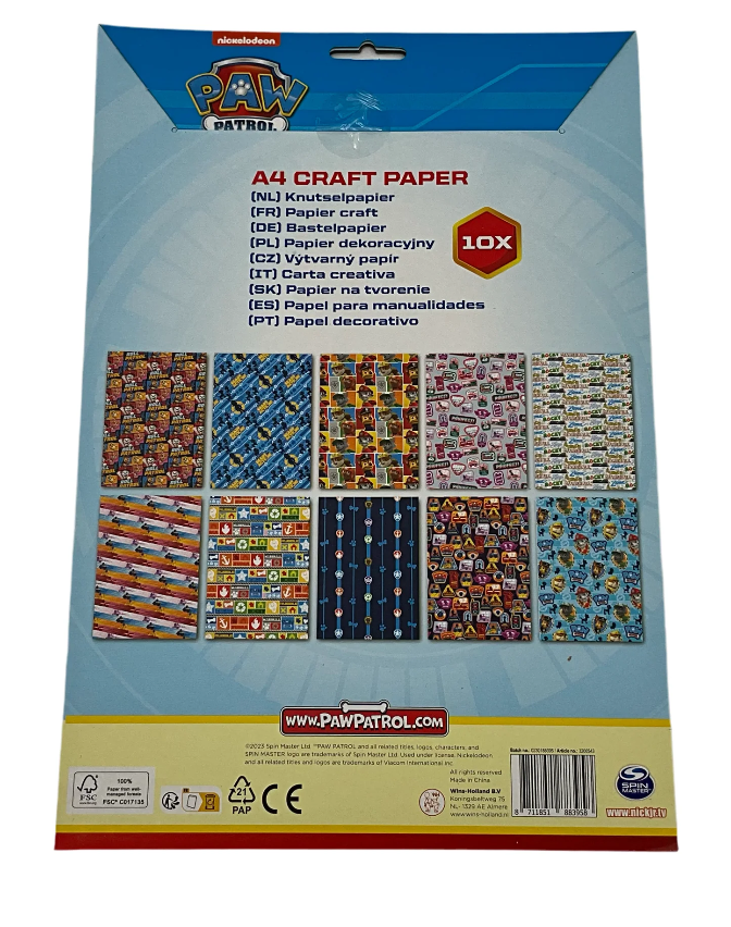 Knutselpapier Paw Patrol inhoud 10 vellen A4