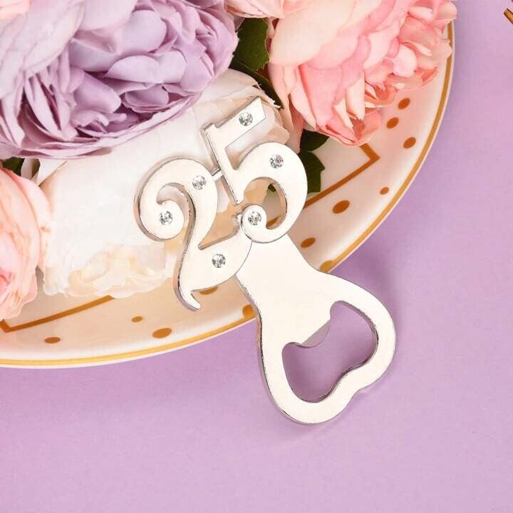 Op zoek naar het perfecte aandenken voor een 25-jarig jubileum of huwelijksfeest? Onze elegante “25 Jaar” flesopener is een schitterend bedankje voor jouw gasten!
