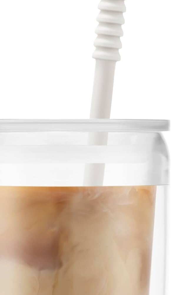 - Stijlvol wit deksel met rietje – herbruikbaar en milieuvriendelijk