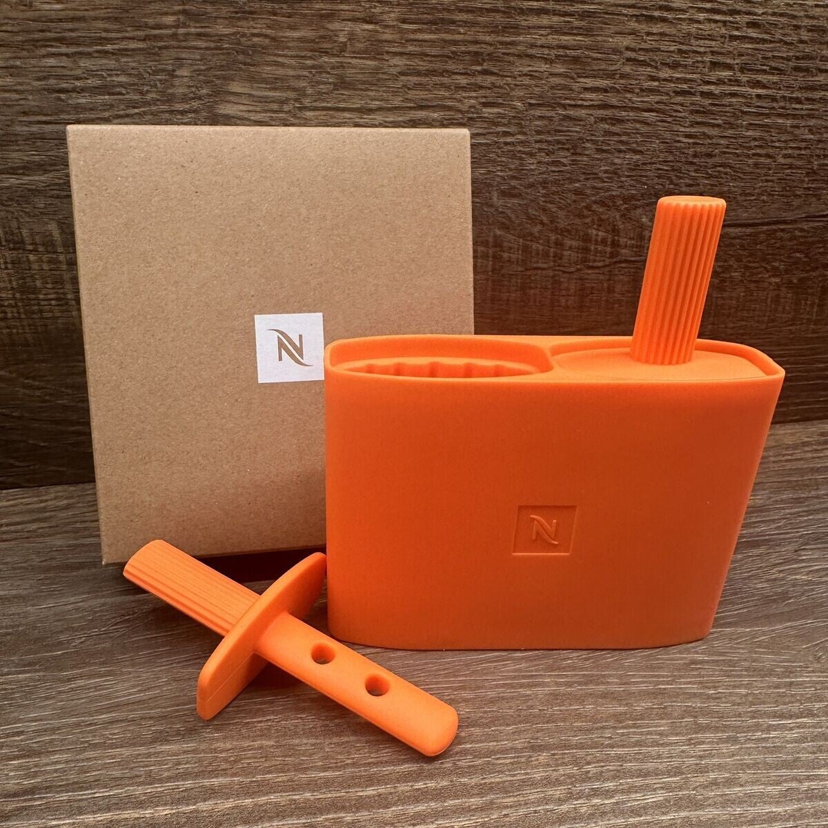 Maak je eigen verfrissende ijstraktaties met deze stijlvolle, herbruikbare ijslollyvorm van Nespresso! Gemaakt van hoogwaardig siliconen in een levendige oranje kleur – perfect voor hete zomerdagen.